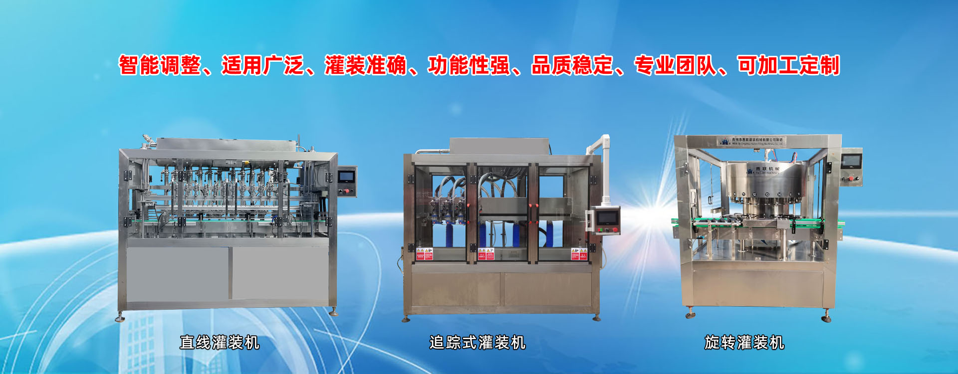 青州市惠聯灌裝機械有限公司是一家集生產研發、銷售、服務于一體的液體灌裝成套設備生產企業,可根據廠家要求設計合理液體灌裝生產線,為用戶提供技術咨詢、設計工藝、場區平面布置、工藝改造、設備安裝調試等完善服務。 公司生產制造各種類型液體灌裝機、過濾機,水處理設備及液體灌裝成套設備。主要產品有:白酒、葡萄酒、黃酒等酒水灌裝機、食用油、機油、潤滑油等油類灌裝機、醬油醋、老抽、生抽等調味品灌裝機、防凍液、玻璃水灌裝機、酒精、84消毒液灌裝機、車用尿素灌裝機、口服液灌裝機、洗滌劑灌裝機等多種液體、膏體灌裝設備,全自動/半自動灌裝機型號多,規格全,洗瓶機、瓶子封口機、打塞機、熱縮機、瓶子烘干機、貼標機、噴碼機、輸送線、裝箱機、水處理設備等全套生產線相關配套設備齊全,自產自銷,一站式購齊,售后無憂。